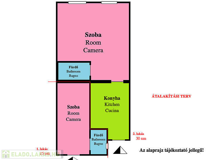 A 3,75m-es belmagasságot kihasználva galériát építettek a hasznos tér növelésére, de praktikus elosztásának köszönhetően 1,5 szobássá alakítható vagy akár ketté is osztható.