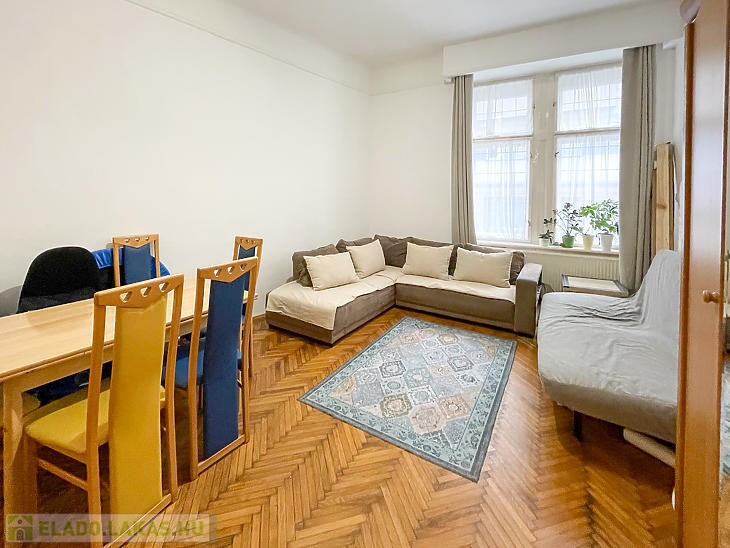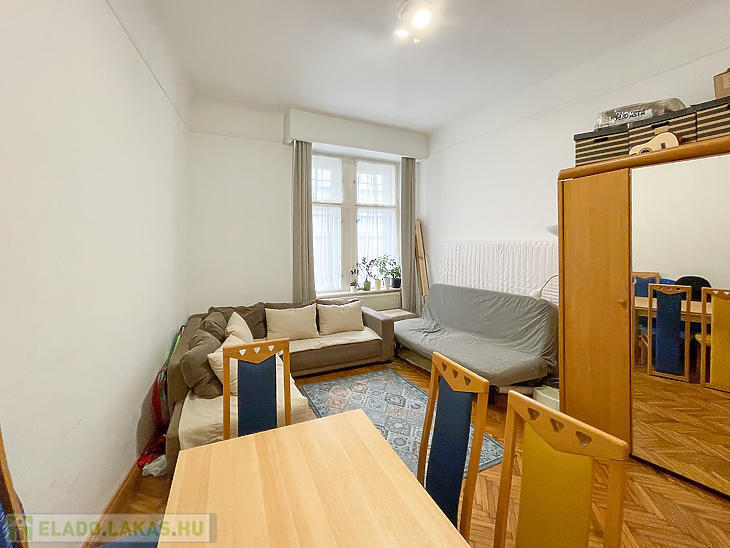 Corvin negyedben első emelet magasságában lévő, de ingatlan-nyilvántartás szerint földszinti, világos lakás eladó.