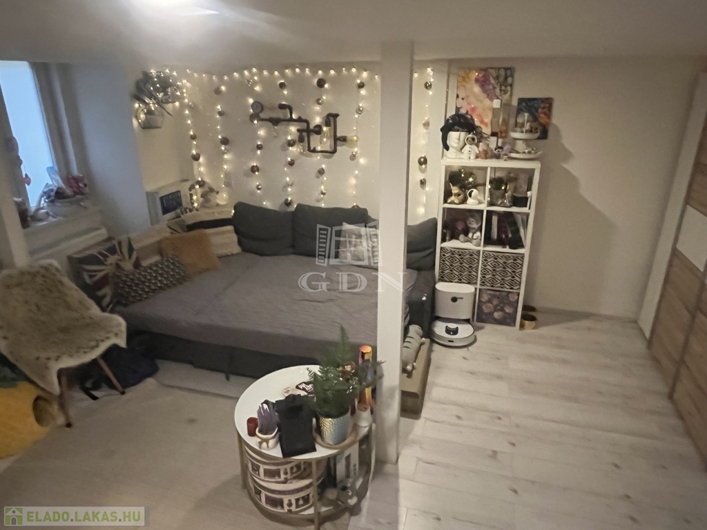 A lakás belső udvarra néz, így a Rákóczi út forgalmából szinte semmi nem szűrődik be. Az alapterület 30 nm, de a nappali felett található teljes állógaléria miatt a hasznos tér 48 nm-re bővül, ami egy sokkal élhetőbb, kényelmesebb otthont biztosít.