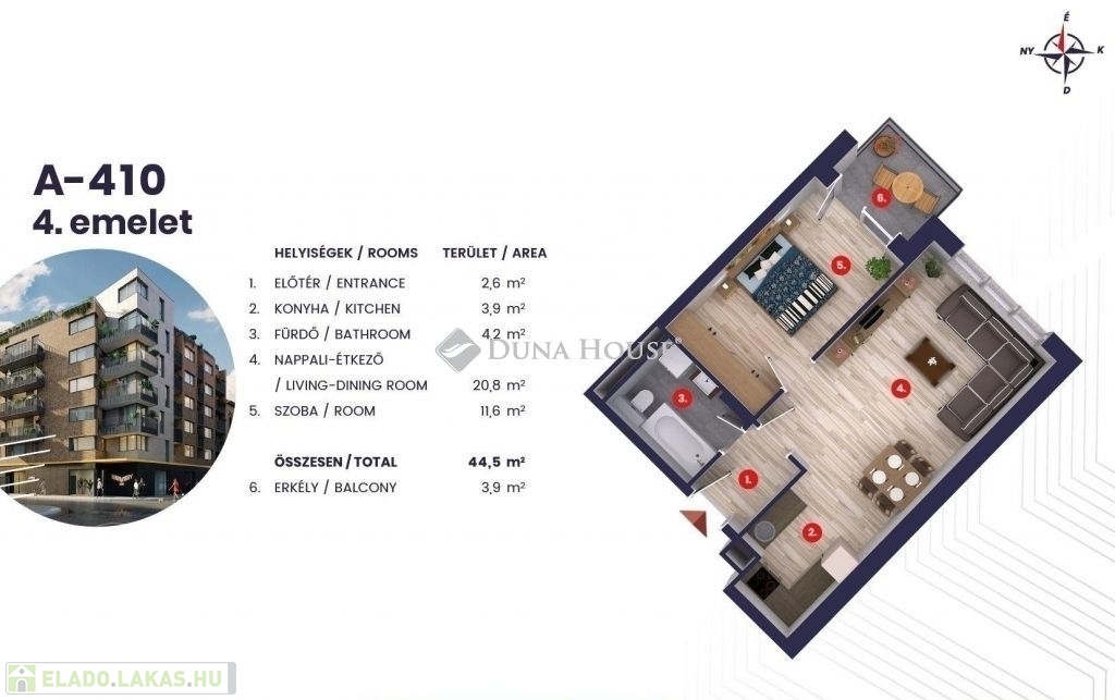 ÚJ ÉPÍTÉSŰ, ERKÉLYES, 2 SZOBÁS LAKÁS ELADÓ VILÁGOS, PRAKTIKUS OTTHON!Eladó egy 43 m²-es, 2 szobás, új építésű (2024), kiváló beosztású lakás egy modern társasházban. A lakás erkéllyel is rendelkezik, így tökéletes választás azoknak, akik szeretnek a szabad levegőn pihenni egy hosszú nap után.Főbb jellemzők:- 43 m² alapterület- Amerikai konyhás nappali + hálószoba- 4 m²-es erkély - Új építésű társasház, modern gépészet és kiváló hőszigetelés- Világos, csendes- 4. emelet- Fűtés: házközponti egyedi mérésselKinek ideális?- Első lakásnak- Befektetőknek (kiválóan kiadható)- Pároknak vagy egyedülállóknak, akik modern és alacsony rezsijű otthont keresnekLegyen Ön az első lakója .