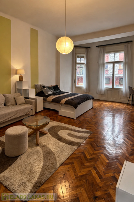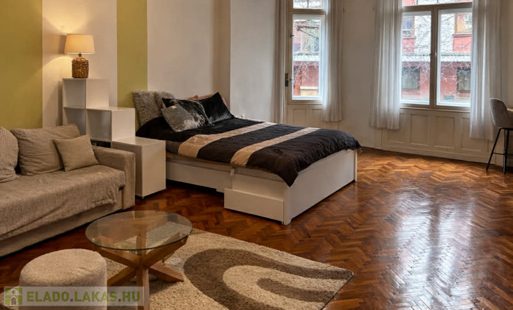 A lakás 1. emeleti, 52 nm, 1 szobás, a Corvin mozi és a Corvin plaza bejáratától, Corvin köztől 100 m-re.
