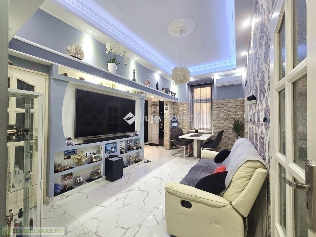 Dobozi utcában azonnal költözhető állapotban!A VIII. kerület frekventált részén, a Dobozi utcában eladó, egy 1. emeleti, 57 m²-es, nappali + 3 hálószobás, minden részletében teljes körűen újragondolt és igényesen felújított téglalakás.Elosztás:-Amerikai konyhás nappali modern, tágas tér, rejtett LED világítással, TV-fallal,-Három hálószoba,-Fürdő + WC egy helyiségben,-Gardróbszoba, -Utcai és udvari nézetű is világos, jól szellőző lakás.A lakás műszakilag és esztétikailag teljeskörűen megújult;-új víz- és villanyvezetékek,-minőségi burkolatok (márványhatású járólap, díszlécezés, rejtett világítás),-energiatakarékos műanyag nyílászárók,-újszerű konyhabútor gépesítve (főzőlap, sütő, páraelszívó, beépített LED világítással),-exkluzív fürdőszoba, modern szaniterekkel és design megoldásokkal,-klímaberendezés,-fűtés: konvektoros, de cirkórendszer is kiépítve, jelenleg melegvíz-ellátást biztosít.A társasház klasszikus téglaépület, belső udvaros, három szintes. A homlokzat és közös terek karbantartást igényelnek, de lakóközössége csendes, és hosszú távra tervezőknek is remek választás.A lakás szinte közvetlen villamoskapcsolattal rendelkezik a belváros, a Keleti pályaudvar, a Nagykörút, illetve Kőbánya és Zugló irányába is. A megállók két percen belül gyalogosan elérhetők, és nincs szükség hosszú sétákra vagy átszállásokra a napi közlekedéshez.- pár perc sétára található Lidl, Spar, Tesco Expressz, zöldségesek, pékségek, DM, Rossmann - közelben óvodák, általános iskolák, sőt több egyetem (SE, Pázmány, ELTE) is gyorsan elérhető villamossal befektetés szempontjából is vonzó.Ez a lakás tökéletes választás azoknak, akik nem szeretnének felújítással bajlódni, hanem azonnal egy szép, modern otthonba költöznének akár családnak, akár befektetésnek is kiváló.Ha a hirdetés felkeltette érdeklődését.