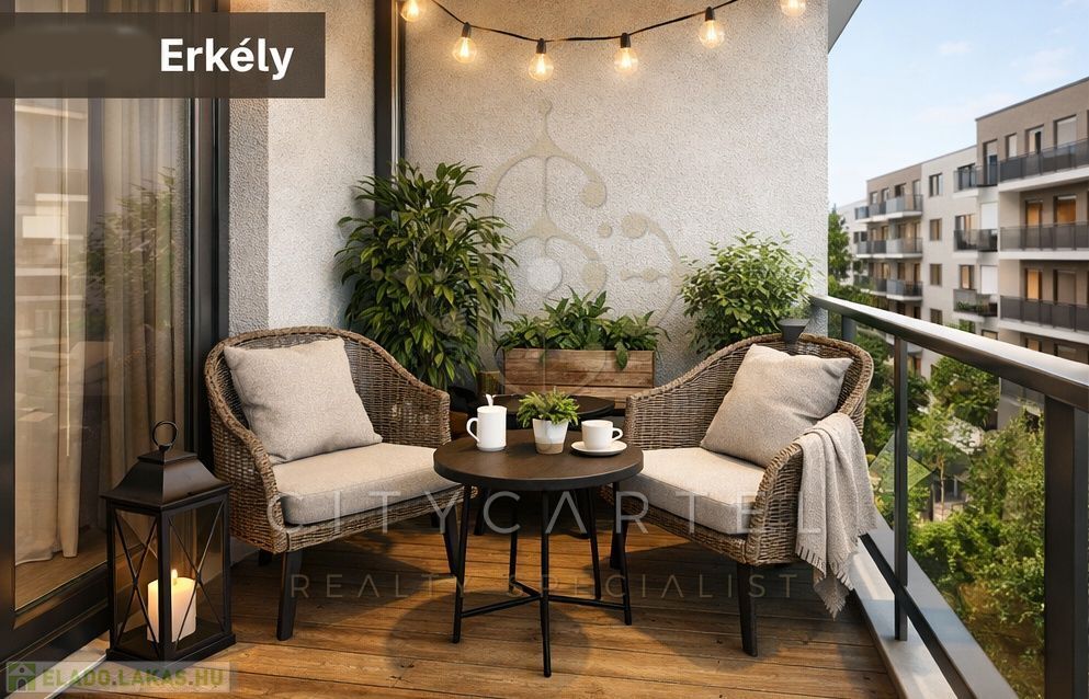 A liftes társasház 3. emeletén található, 45,36 nm-es, (40,36 nm lakás 10 nm terasszal) 2 szobás lakás korszerű hőszivattyús fűtés–hűtéssel és teljes körű okosotthon-rendszerrel felszerelve várja új tulajdonosát. A burkolatok még választhatók, így a leendő tulajdonos saját ízlésére szabhatja az ingatlant.
