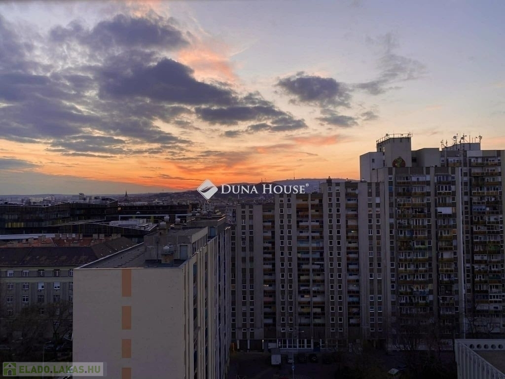 örök kilátással a Gellért-hegyre!Budapest VIII. kerületében, a Corvin negyed közvetlen szomszédságában kínálunk megvételre egy 13. emeleti, 54 m²-es, 2 szobás, 8 m²-es loggiával rendelkező, örökpanorámás, rendkívül világos és jó állapotú lakást.A lakás egyik legnagyobb értéke a lélegzetelállító panoráma a Gellért-hegyre, amely ebben a városrészben igazi ritkaságnak számít.Társasház:Az épület az elmúlt években folyamatos korszerűsítésen és karbantartáson esett át:- 3 db felújított lift- Rendezett, tiszta lépcsőház- Jó lakóközösség, stabil működés A lakás elrendezése (54 m² + 8,19 m² loggia)Praktikus, jól átgondolt alaprajz:- Előszoba: 4,96 m²- Tágas, ablakos konyha: 7,82 m²- Nappali: 18 m² innen nyílik a 8,19 m²-es erkély- Hálószoba: 12 m²- Fürdőszoba: 3,37 m²- Külön WC: 0,88 m²- Folyosó gardróbbal: 3 m²A szobák déli fekvésűek, a konyha nyugati tájolású, így a lakás egész nap világos, napfényes. Műszaki állapot- A lakás 4-5 évvel ezelőtt, három ütemben teljes körű felújításon esett át:- Nyílászárók cseréje- Villanyvezetékek cseréje- Teljes gépesítés (mosógép, mosogatógép, klíma)A lakás bútorozott, a berendezés a vételár részét képezi így akár azonnal költözhető vagy kiadható. Fenntartási költségek:- Közös költség: 13.000 Ft / hó- Fűtés: távfűtés- Teljes rezsi: fogyasztás alapján kb. 40.000 Ft / hóKözlekedésKiváló infrastruktúra és közlekedés:- 72-es és 83-as troli- 9-es busz- 4/6-os villamos- 3-as metró Corvin-negyed és Klinikák megállóKörnyék:- A Corvin negyed közelsége miatt minden néhány percen belül elérhető:- Éttermek, kávézók, üzletek, szolgáltatások közel 100 egység- Egyetemek: Semmelweis Egyetem, Pázmány Péter Katolikus Egyetem, Nemzeti Közszolgálati Egyetem- A megújult Orczy-kert kiváló kikapcsolódási lehetőséggelEz a lakás ideális választás saját otthonnak vagy befektetésnek egyaránt panorámája, elhelyezkedése és állapota miatt kiemelkedő lehetőség a piacon.