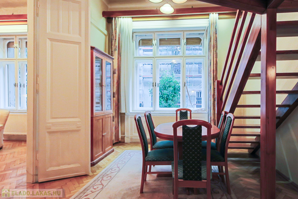 A 71 m²+ galéria kialakítású lakás 2000-ben került teljeskörű felújításra, ennek során figyelembe véve a miliő megtartását, annak szintjének emelését a beépített bútorok tekintetében is. Melegvíz- ellátása és fűtése gázkazánnal üzemel, utóbbi lapradiátoros hőleadással. Nyílászárói Gerébtokosak, fából készültek és redőnnyel felszereltek. Az ingatlan jelenlegi állapota a felújítás óta eltelt 25 évet nézve, műszaki szempontból a mai kor követelményei szerint közepesnek mondható. Mindazonáltal ez a lakás valóban megvigyázott, szép állapotú.A képeken látható beépített és szabadon álló gépek, bútorzat a kínálati ár részét képezik.