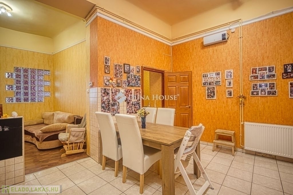 egy harmadik emeleti, 86 nm-es tulajdon lap szerint 2 szobás, az átalakítást követően 4 db ½ szoba került kialakításra, és egy teljes értékű szoba.Az ingatlan jó állapotú tisztasági festéssel költözhető.Kiemelném a társasházban nincs lift.Az ingatlanba belépve az előszobából balra nyílik egy lakószoba, a tágas közlekedőből nyílik a kamra, a fürdőszoba, a wc, a jelenlegi tulajdonos átalakításának köszönhetően a 26,7 m2-es amerikai konyha+nappali étkező a családi élet színtere lehet, ezenkívül, hálószoba, gyerekszoba, és egy lakószoba került kialakításra.A családi otthon az alábbi korszerűsítésen esett át:- villanyvezeték hálózatot korszerűsítették,- az ablakok korszerű műanyag nyílászárók,- 2022 ben kondenzációs kazán került beépítésre,- kiegészítő fűtésként elektromos panelek állnak rendelkezésre,- a burkolatok cseréje megtörtént,- a padlózatot újra betonozták.A közös költség 40,595, Ft, mely tartalmazza a takarítást a szemétszállítást, és a felújítási alapot is.A gáz, a víz és a villany fogyasztás egyedi mérés alapján történik.A vételárrészét képezi a beépített, gépesített konyhabútor és az elektromos fűtőpanelek.Autóval a parkolás az utcán lehetséges, a lakóknak egyszeri díjat kell fizeni az önkormányzatnak.Ajánlom befektetőknek, családosoknak, de felsőoktatásban tanulók számára is kiváló választás, mivel az egyetemek könnyedén és gyorsan megközelíthetőek.A lakás könnyedén ketté osztható, a kiadhatósága garantált.Tömegközlekedés szempontjából is kiemelten jó helyen van a lakás: A Keleti Pályaudvar 10 perces sétával elérhető, több villamos megálló is van a lakás közelében: 28-as, 23-as, 24-es és a 37/A villamos vonal elérhető.A környék remek éjjel-nappali közlekedéssel és szuper infrastruktúrával rendelkezik.NÁLUNK VEVŐINKNEK MINDEN SZOLGÁLTATÁS DÍJMENTES!Megtalálta a megfelelő ingatlant, ám megvásárlásához hitelre van szüksége?DÍJMENTES Hitel Centrumunk banksemleges tanácsadással, és teljes körű ügyintézéssel áll az Ön szolgálatára!