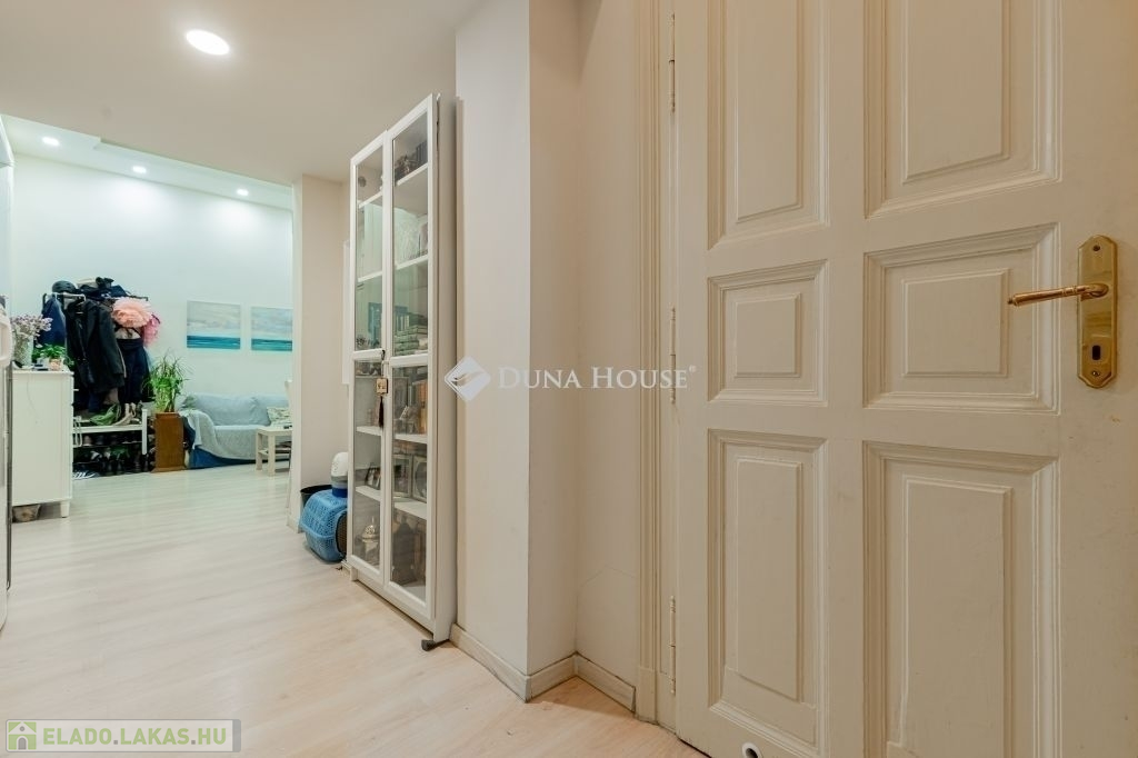 Megvételre kínálom ezt a 77 nm alapterületű, 2 szobás - a Rákóczi úttól kb 50 méterre található, az Erzsébet körúthoz közeli - 2019-ben teljeskörűen felújított 2. emeleti lakást.Az ingatlanba belépve szemben találjuk a gépesített konyhát (mosógép, hűtő, elektromos sütő, főzőlap), a folyosóról jobbra található egy különnyíló, galériázott( masszív vasgerenda, faburkolat) szoba (közel 14 nm), amely a csendes udvarra néz. Tovább haladva balra található a fürdő, amely zuhanyzóval van ellátva, majd tovább haladva a világos, csendes, nagyméretű ( 33nm) nappaliba érünk.Az ingatlan per és tehermentes, 1/1 tulajdon, rövid időn belül költözhető.Az ingatlan fűtűs/hűtéséről 3 db inverteres klíma gondoskodik.Közös költség 16.000.- Ft.A házat folyamatosan karbantartják, a lépcsőházat nemrégiben festették ki.Tömegközlekedés szempontjából is kiváló, a 4-es és a 2-es metró kb 2 percre található, a 7-es,99-es busz valamint a 4-es és 6-os villamos szintén pár perc sétatávolságra van.Az utcán mindig található parkolóhely.Megtekintéssel vagy egyéb kérdéssel kapcsolatban állok rendelkezésére a hét bármely napján.