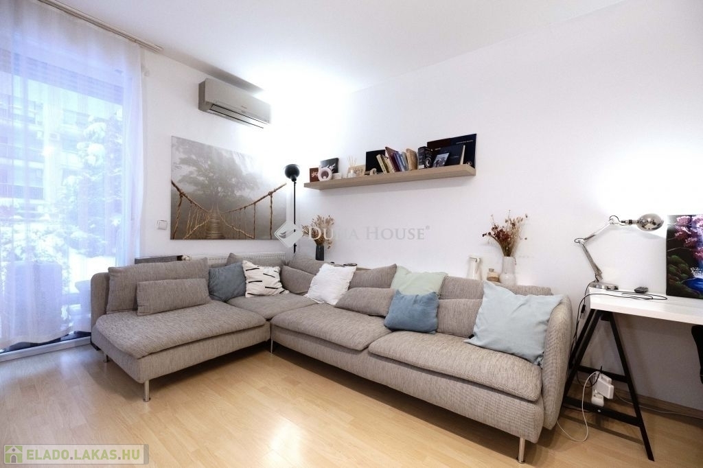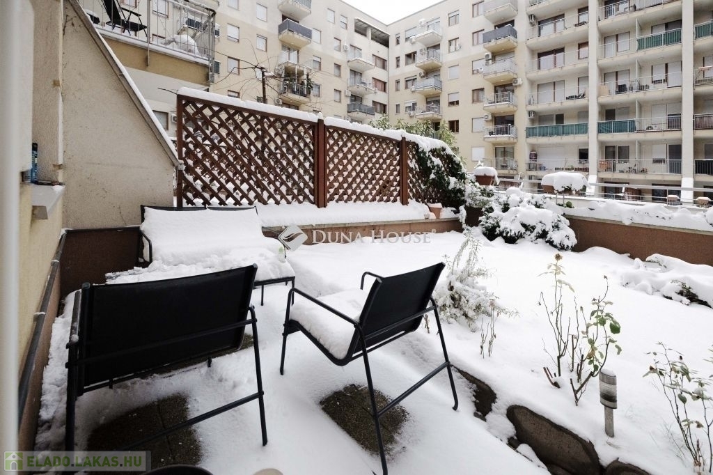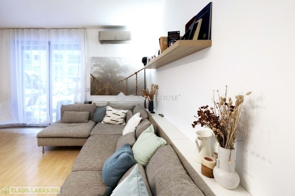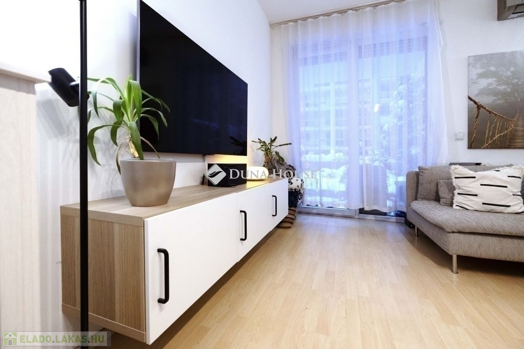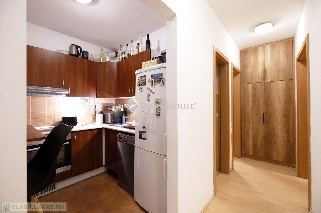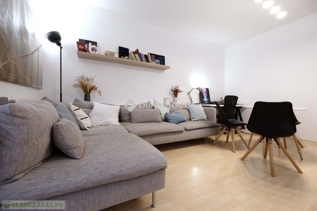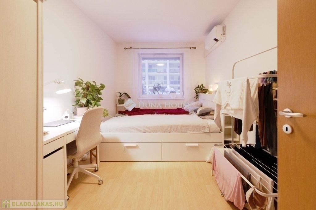 Otthon Start Programmal kompatibilis, modern, 2 szobás lakás nagy terasszal és parkolóval a János Pál Pápa tér közelében!Fiatal tulajdonostól eladó egy kiváló állapotú, modern hangulatú kétszobás lakás a János Pál Pápa tér közvetlen közelében, csendes utcában, mégis kiváló közlekedéssel. Az ingatlan egy 2008-ban átadott, liftes, téglaépítésű társasház első emeletén található. A lakás jellemzői :Tulajdoni lapon 76 nm (lakás + terasz),A lakótér mérete 55 m2,Észak-nyugati tájolás, belső udvarra néző ablakok és terasz, Zöldövezettel egybekötött, nagy terasz,2 külön nyíló szoba + előtér + közlekedő + konyha + WC + fürdőszoba, Modern elrendezés, ötletesen megtervezett terek,Méretre gyártott, beépített gardróbszekrények,Jól felszerelt, modern konyha,Fürdőkáddal felszerelt fürdőszoba,Házközponti fűtés, egyedi mérőkkel,Hűtőfűtő klímák két helyiségben,Parkolás:A lakáshoz tartozik egy teremgarázs-beálló az épületben, ami 8,00 M Ft ellenében kötelezően megvásárolandó a lakás mellé. A lakás 82,00 M Ft-os kikiáltási ára nem tartalmazza garázs ellenértékét.Egyéb előnyök:Rendszeresen karbantartott, otthonos érzést kínáló lakás,Igényesen összeállított, ízléses berendezés,Tehermentes, 1/1-es tulajdon,Rövid határidőn belül költözhető,Ár-érték arányban kiemelkedően jó ajánlat a piacon.Otthon Start