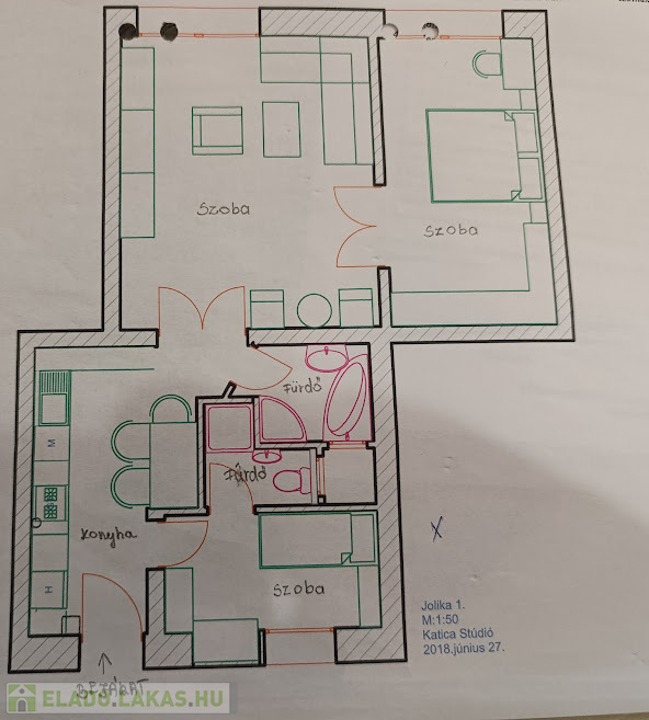 A lakásba belépve egy igényesen felújított, gépesített konyha/étkező található. A konyhából bal kéz felől egy szoba található, ahonnan nyílik a 2024-ben készült fürdő és Wc. A konyha másik oldalán található egy külön nyíló, felújított újabb Fürdő-wc. A meleg vizet villanybojler biztosítja. Az ingatlanhoz tartozik továbbá két egymásba nyíló, de csukható szoba. A méreteik 27m2 és 17 m2. Az ingatlan hirdetéshez alaprajz tartozik. A szobákba fa a konyhába pedig műanyag nyílászárok taláhatóak.