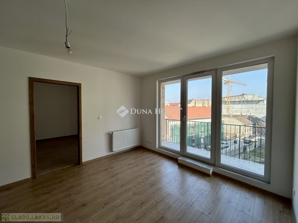 ÚJ ÉPÍTÉSŰ, VILÁGOS LAKÁS VÁRJA ELSŐ LAKÓJÁT ERKÉLLYEL ÉS TEREMGARÁZZSAL!Eladó egy 2024-ben épült, modern társasház 4. emeletén található, 58 m²-es, világos, kiváló elosztású lakás 6 m²-es erkéllyel. A lakás eddig nem volt lakva, így Ön lehet az első beköltöző!A tágas nappali nagy ablakfelületekkel rendelkezik, a két külön nyíló hálószoba pedig csendes és jól szeparált. A lakás friss, modern, igényes kivitelezésű tökéletes választás otthonnak vagy befektetésnek.Főbb jellemzők:- 58 m² alapterület- Új építés (2024) első lakó- 4. emelet, liftes ház- 6 m² erkély- Világos, nagy ablakos terek- Modern kivitelezés, friss burkolatok- Teremgarázs-beálló (8 100 000 Ft)- Rendezett, új környék, kiváló közlekedéssel és folyamatosan fejlődő környezettel.Ideális pároknak, egyedülállóknak, vagy hosszú távra tervező befektetőknek.További információért vagy megtekintésért keressen bizalommal!---------------------------