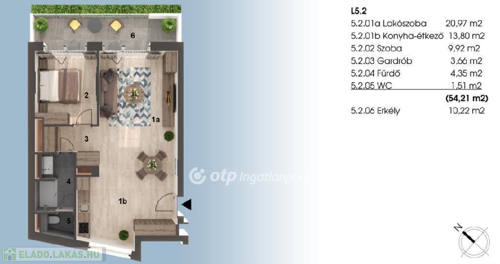 Az eladásra kínált ingatlanok 30,1 nm-100 nm közötti méretben épülnek, egy 6 emeletes, 16 lakásos házban részben erkéllyel/terasszal.