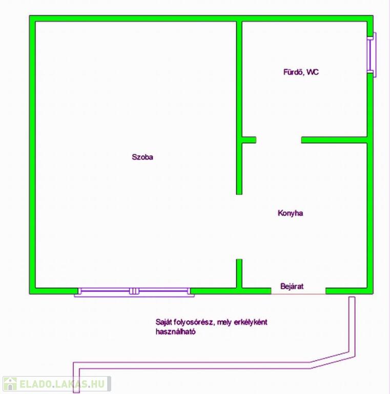 A nagyobb lakrész körülbelül 39 m, nagy étkezős konyhával, külön hálószobával, ablakos zuhanyzós fürdőszobával és külön WC-vel, amely szintén szellőztethető.