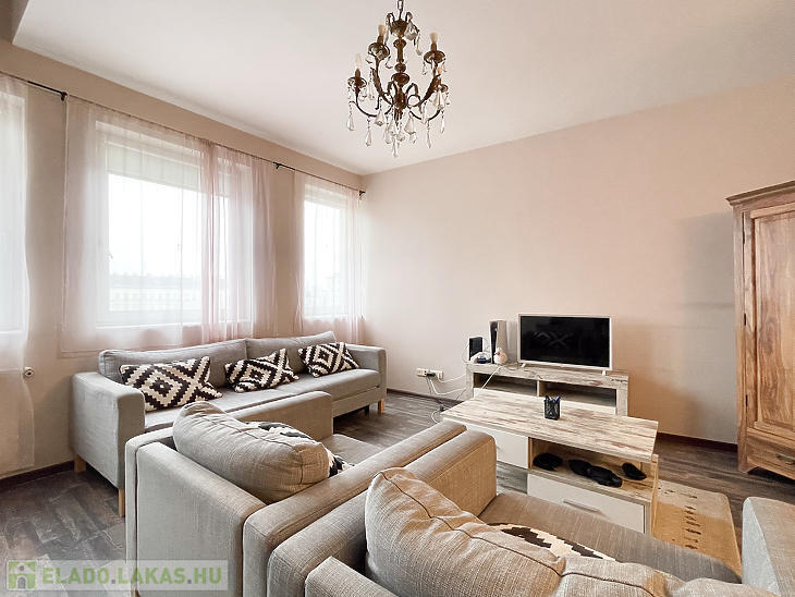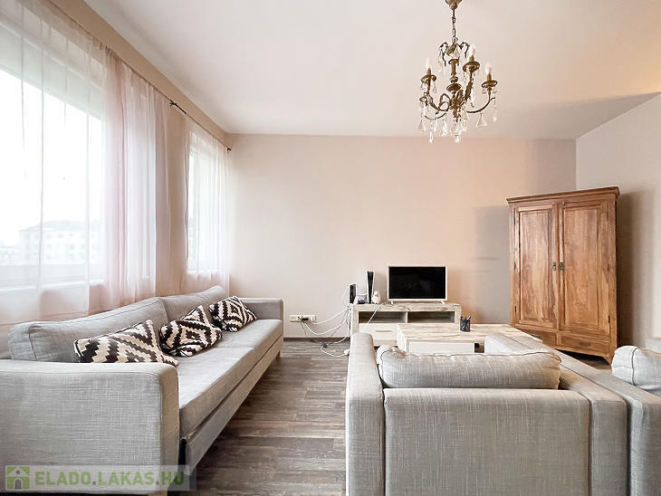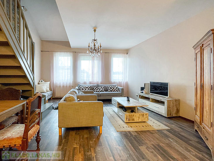 A 2014-ben megújult, parkosított Teleki László téren, egy 2000 után épült, liftes társasház negyedik emeletén (legfelső szintjén) eladó egy kétszintes, két fürdőszobás újszerű lakás.