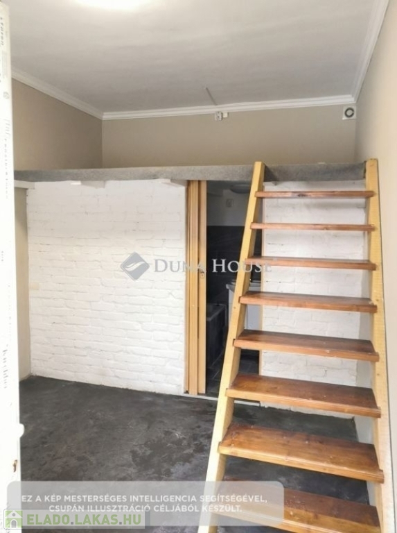 Az ingatlanba belépve a lakás legnagyobb, nappali + konyha funkciójú helyiségébe érkezünk meg. A helyiség jól berendezhető, egyedülállók, esetleg párok számára is megfelelő életteret kínál. A helyiségből egy fürőszoba + wc helyiség nyílik, melyben a fürdéshez kád is rendelkezésre áll. A fürdőszoba feletti rész, a lakás belmagasságának köszönhetően hálógalériaként funkcionál, így a lakás szeparált hálórésszel is rendelkezik.