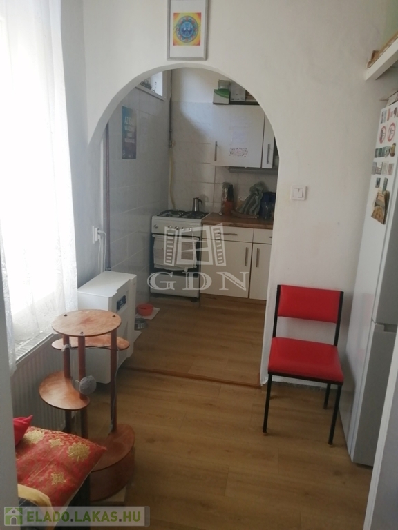 Tégla építésű HÁZBAN, udvarra néző, első emeleti, két szobás, ablakos konyhás 39 nm ingatlan.