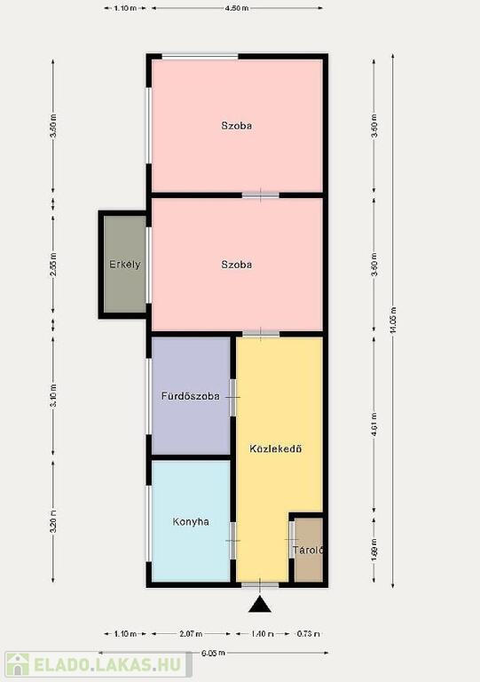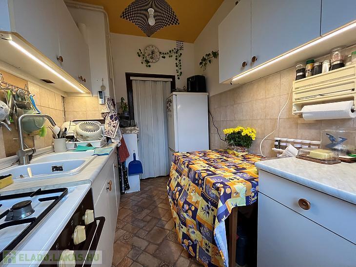 A konyhája tágas ablakos helyiség fürdőszobája kádas, lakáson belül kamra áll rendelkezésre a tárolásra.