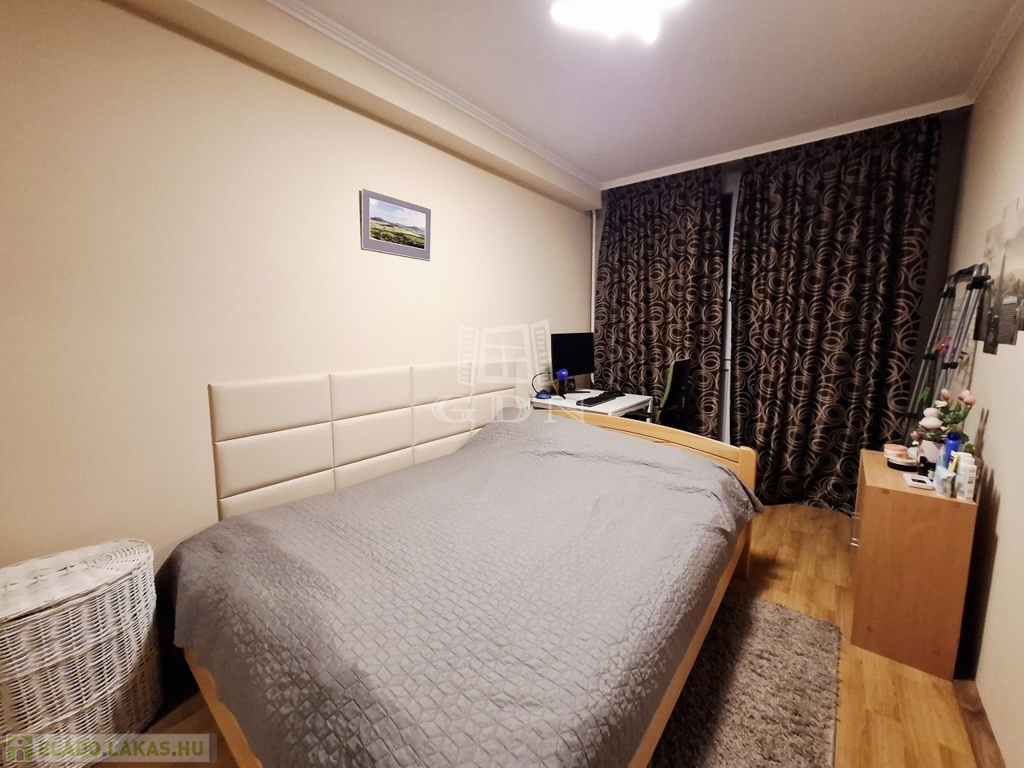 A felső emeleti elhelyezkedésnek köszönhetően a lakás világos, jó benapozottságú, a lodzsa kellemes plusz életteret biztosít.