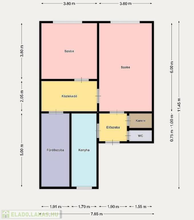 Az ingatlan 58 m² alapterületű, 2 külön nyíló szobával rendelkezik, elrendezése praktikus és jól élhető.