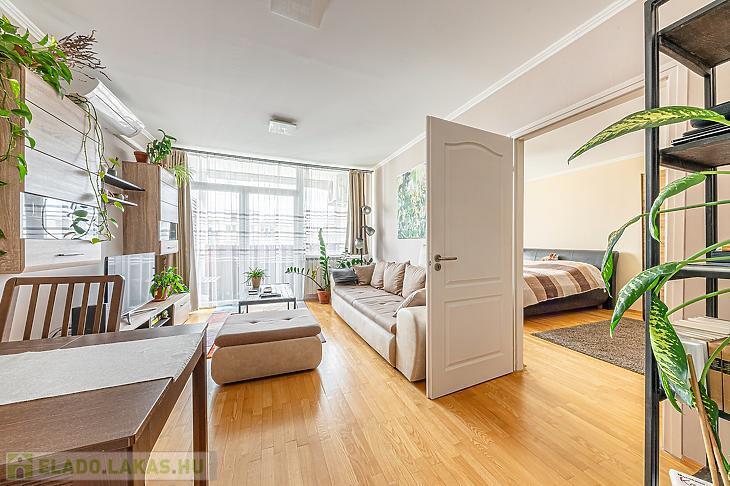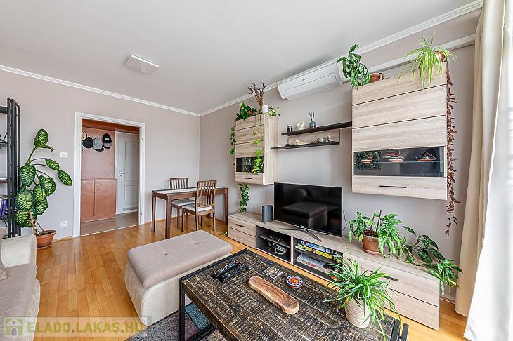 Az ingatlan belső elrendezése kiváló, a lakószobák külön-külön és egymásból is megközelíthetőek. A lakás új nyílászárókkal és fűtőtestekkel rendelkezik, az elektromos kábelek cseréje megtörtént, hűtő-fűtő klíma került beszerelésre, gyönyörű EREDETI fa parketta burkolat van felújítva a lakásban. Konyhája ABLAKOS.