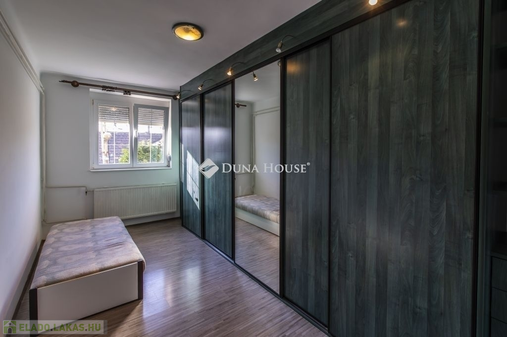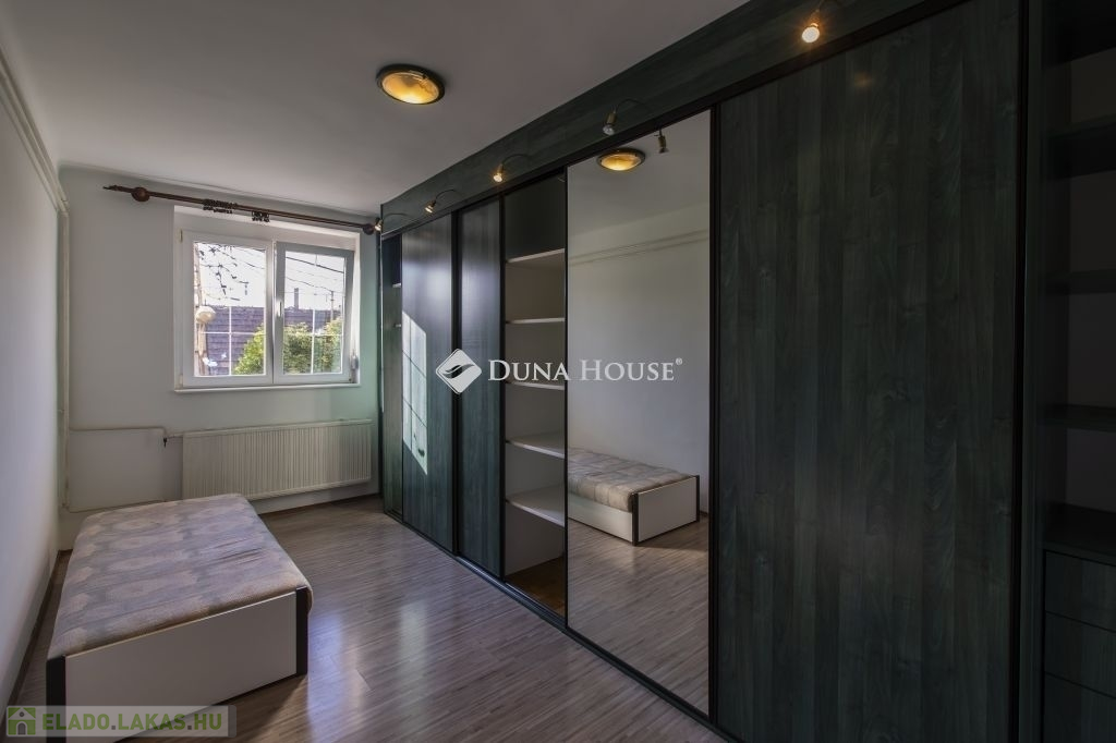 ÓHEGY SZÉLÉN, EKRÉLYES, BELSŐ KERTRE NÉZŐ, 3 SZOBÁS, JÓ ÁLLAPOTÚ LAKÁS!A X. kerület központi részén, a Szent László tértől, Liget tértől 10 percre, csendes utcában, eladó egy első emeleti, jó állapotú, 74 m2-es, nappali + 2 hálós, világos lakás. Jó elrendezésű, az előszobából jobbra-balra nyílnak a helyiségek, az ablakos étkezős-konyha, a belső kertre néző, erkélyes nappali, a két hálószoba, a zuhanyzós fürdőszoba és a külön wc. A keleti tájolású nappali és az egyik szoba a társasház közös, belső kertjére néz, a konyha és a másik háló a csendes utcára. Elrendezéséből adódóan akár egy család részére is megfelelő lehet, de épp a külön nyíló szobák miatt két külön személynek / testvérpárnak is jó választás.Az ingatlan jó állapotú, folyamatosan karbantartott, 10 évvel ezelőtt volt nagyobb felújítás, amikor is cserélték a nyílászárókat, redőnyt szereltek fel, valamint új laminált parketta került a szobákba.Tartozik hozzá egy 10 m2 körüli pinceszinti tároló is!A vételár részét képezik a beépített bútorok, a gépesített konyhabútor, a szobai gardróbszekrény.Tíz perces sétatávolságon (vagy 1 megállónyira) több kisebb-nagyobb élelmiszerbolt, gyógyszertár is található, de nagyobb bevásárlóközpont - pl. KÖKI, ÁRKÁD - autóval 8-10 perc.Azonnal költözhető, azonnal kiadható!