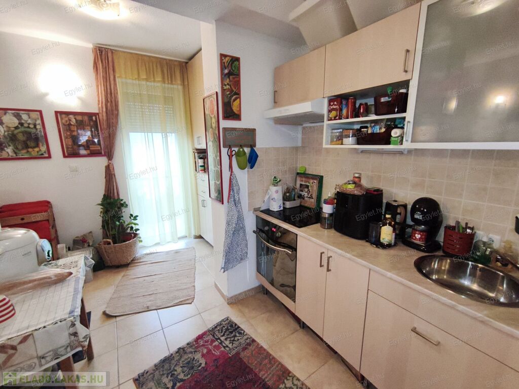 A lakásban magas minőségű egyedi és beépített bútorok találhatóak, melyek a vételár részét képezik. Konyhában beépített gépesített konyhabútor, előszobában egy beépített cipős szekrény, előszobafal és polcos szekrény. Az ingatlanban található berendezés, bútorok majdnem mind maradnak.