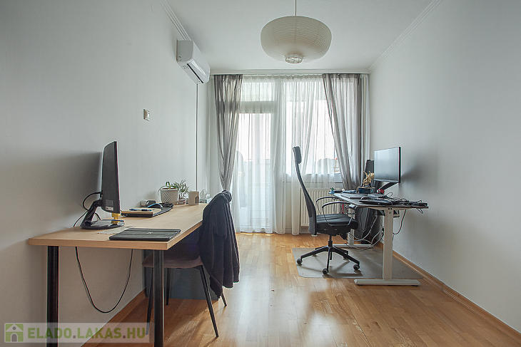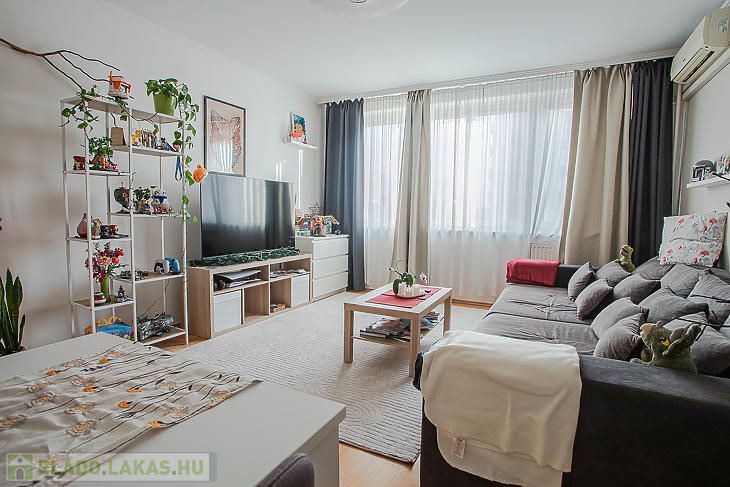 Az ingatlan egy 10 emeletes panelházban található. A lakás déli tájolású, világos és kellemes hangulatú, továbbá klimatizált, így nyáron is komfortos otthont biztosít.