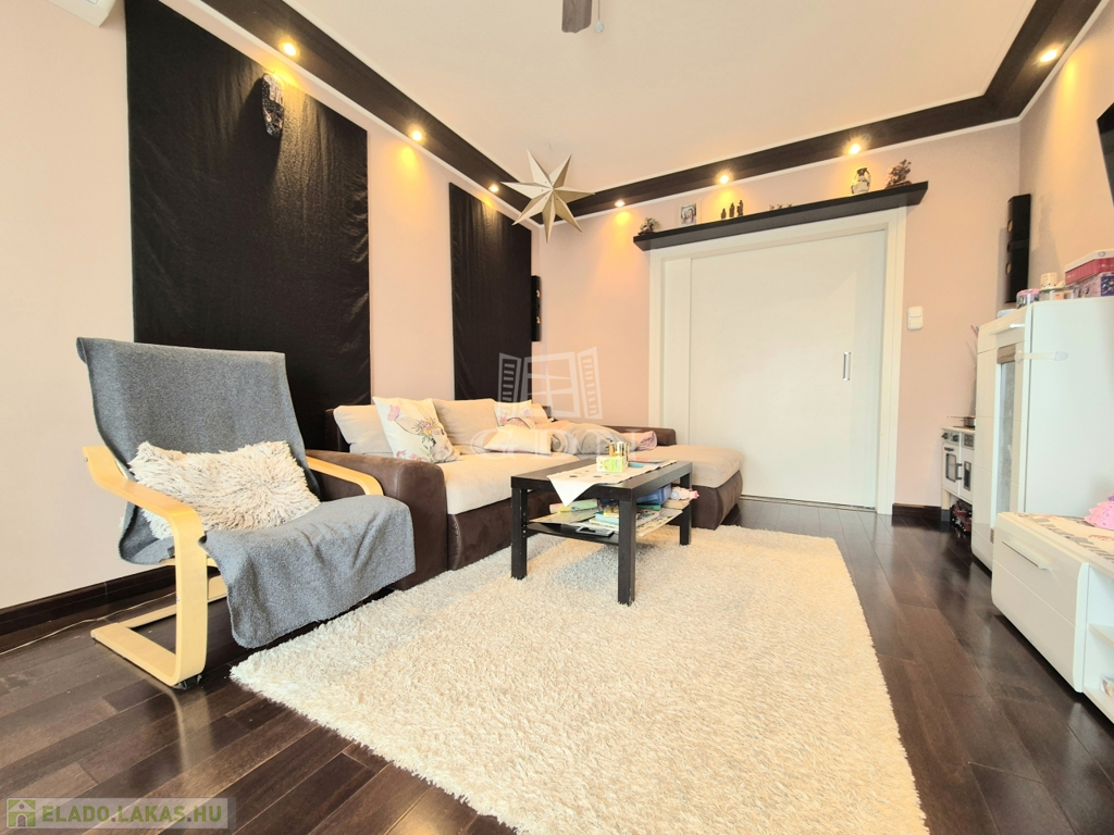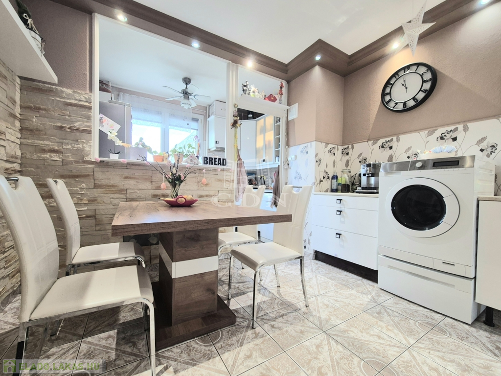 X. kerület metróhoz közeli részén, parkos környezetben, kifizetett panelprogramos társasházban kínálok eladásra, egy 6. emeleti, 74 m2-es, körbenapozott, erkélyes, ablakos konyhás, 2+2 fél különnyíló szobás, teljeskörűen felújított ( műanyag nyílászárókkal, egyedi hőmennyiségmérős radiátorokkal, korszerű villany, vízhálózattal, tetszetős beltéri ajtókkal szerelt, hideg- meleg burkolat cserén átesett) klimatizált