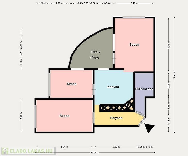 A lakás alapterülete 61 nm, amelyhez egy tágas, 12 nm-es erkély tartozik, ahonnan gyönyörű panorámás kilátás nyílik.