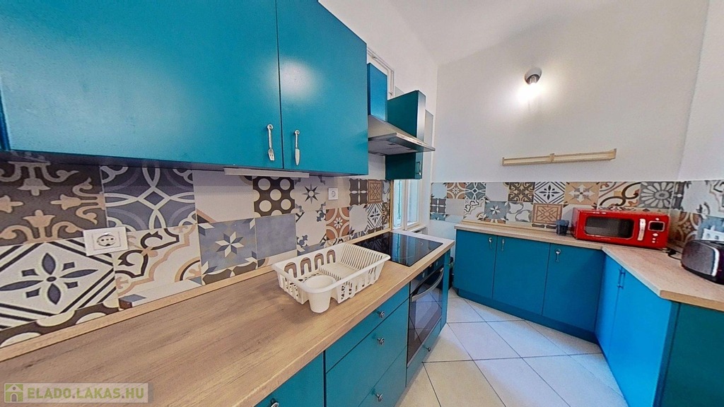 konyhabútor és konyhai gépek kerültek beszerelésre (villanytűzhely, mosogatógép, páraelszívó, pult).