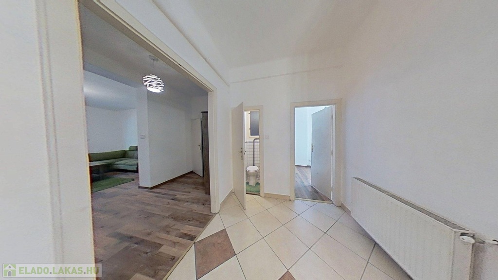 A lakáshoz tartozik a pincében 3,5 nm nagyságú zárható tároló, az épület belső udvarán közös használatban levő kertet is használhatjuk.
