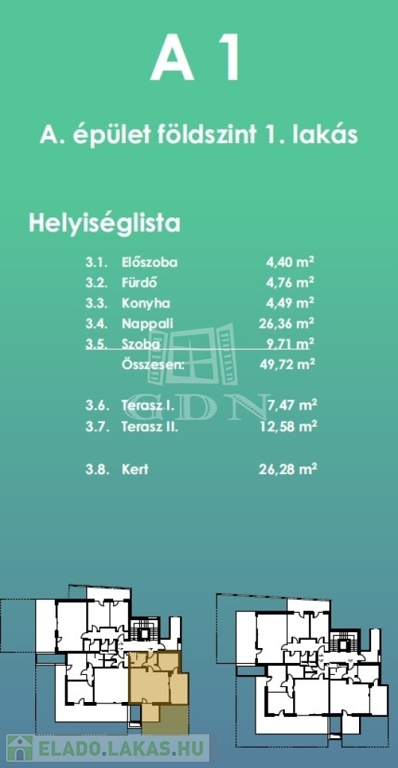49, 54, 71, 80 nm2 méretű ingatlanok közül lehet választani. Földszinti lakások saját terasszal és kertrésszel míg az 1. és 2. emeleti lakások nagy teraszokkal rendelkeznek.
