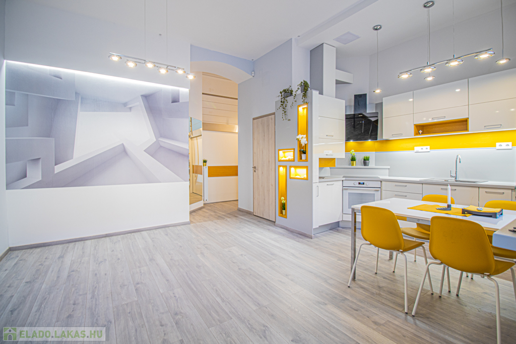 Eladó a XI. kerületben a Gellérthegy lábánál egy jó állapotú, polgári társasházban lévő amerikai konyhás nappali + 2 hálószobás, teljes mértékben műszakilag és esztétikailag is magas minőségben felújított, DNY-i fekvésű, 2 fürdőszobás, jó beosztású lakás.