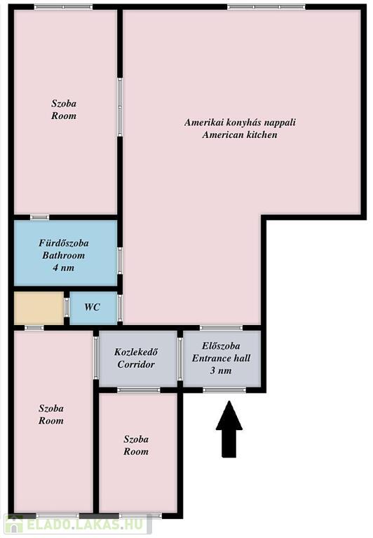 A lakás legnagyobb értéke a kiváló alaprajzi adottság, amely számos átalakítási lehetőséget rejt magában.