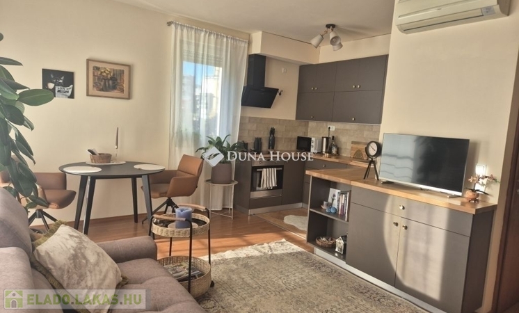 A lakás világos, remek elrendezésű, gépesített konyhával rendelkezik, klímás.