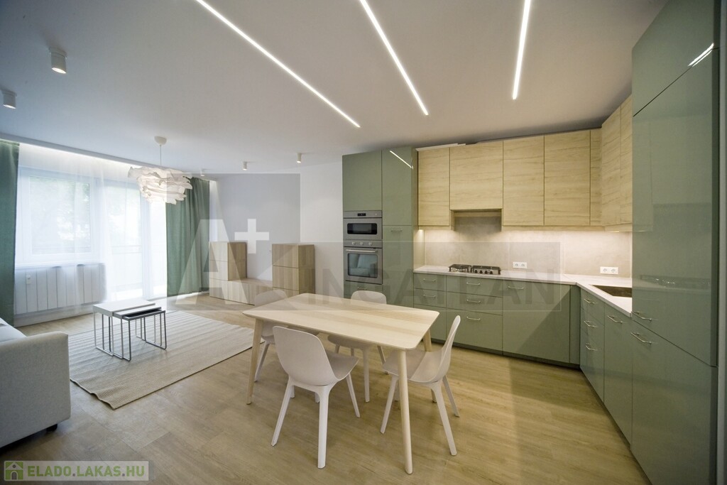 A lakás az elmúlt években teljesen megújult , belső építész tervei alapján készült, ahol a cél a modern elegancia és a praktikus kihasználhatóság ötvözése volt. A felújítás során különös figyelmet fordítottak az elegáns színharmóniára. A belső terekben a pisztácia , lágy bézs , tiszta fehér ,nemes szürke árnyalatai dominálnak , amelyeket a kiegészítőkkel és a meleg fa felületekkel tettek otthonossá.