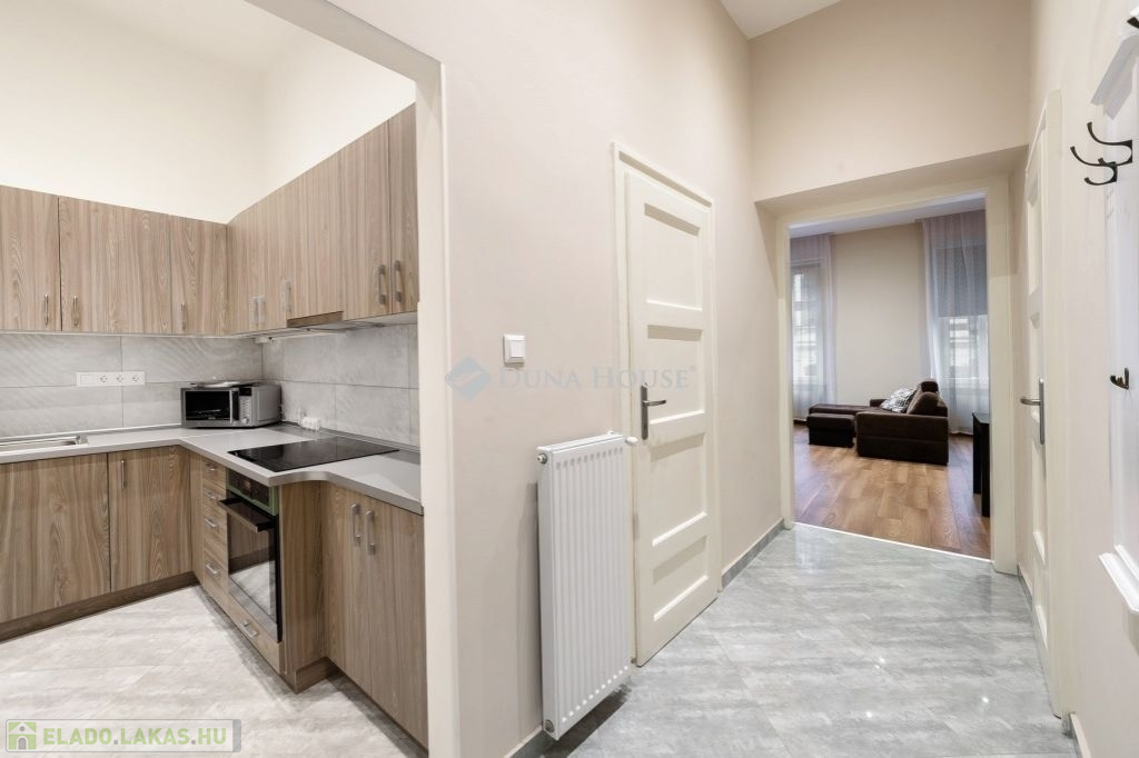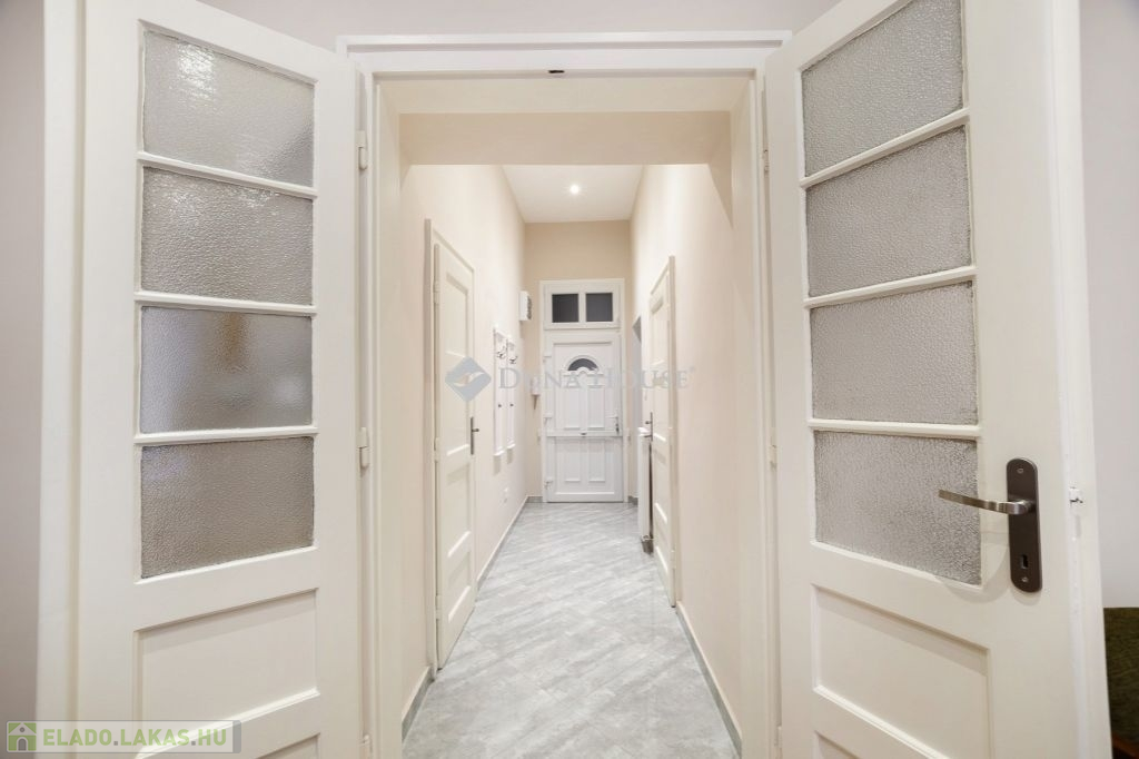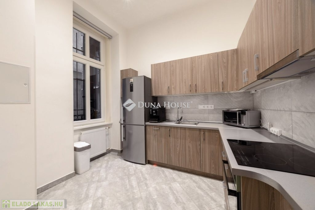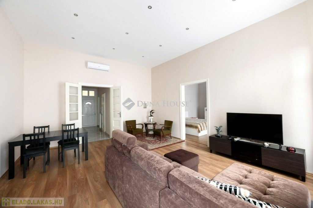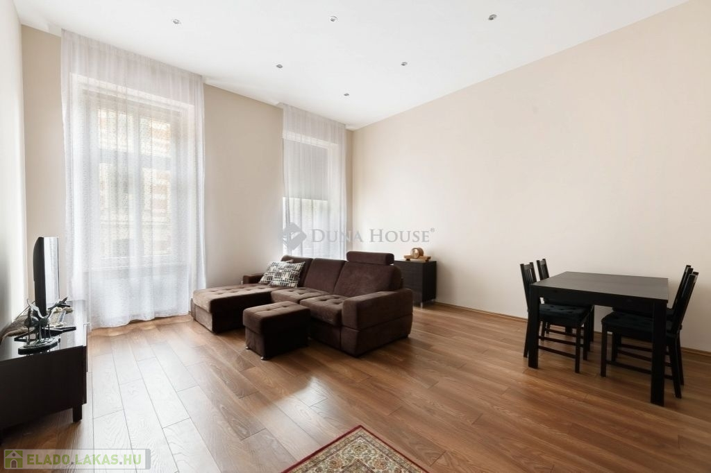 Minőségi burkolatok, Teka csaptelepek, és egy egyedi tervezésű zuhany került beépítésére. Minden háztartási gép Electrolux márkájú: a mosó-szárítógép, az indukciós főzőlap, a sütő, a mosogatógép, a hűtő, és a páraelszívó egyaránt. A fűtésről cirkó gáz kazán gondoskodik, a meleg vizet takarékos villany bojler szolgáltatja. A lakás felújítás teljes körű volt, igazi kényelmes otthont varázsoltak belőle. A berendezés megegyezés tárgyát képezi.A környék ellátottsága kitűnő, akárcsak a közlekedés. Rengeteg bevásárlási lehetőség, étterem, kávézók, Gellért fürdő, színház és vég nélkül sorolhatnánk mi minden elérhető a hangulatos környéken. A nagy méretű háló ablakából láthatjuk a Szabadság hidat és a Dunát is.Amennyiben olyan otthont keres ahová csak költöznie kell, és mindezt kiváló környéken, akkor megtalálta!