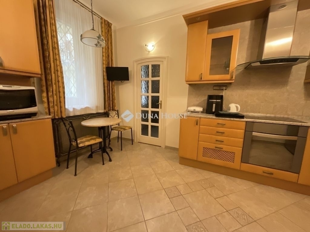 Az ajtón belépve tágas terek fogadnak: nagy, kényelmes szobák, jól felszerelt konyha étkezővel. A konyha nagyméretű ablaka a ház belső udvarára néz. A sarokkádas fürdőszoba tágas, letisztult és praktikus. A lakásban található még egy 2 nm-es, ablakos helyiség, amely alkalmas akár dolgozószobának, vagy gardróbnak is. Az ingatlan kisebb családnak, pároknak is kényelmes otthona lehet, de akár irodává is átalakítható.