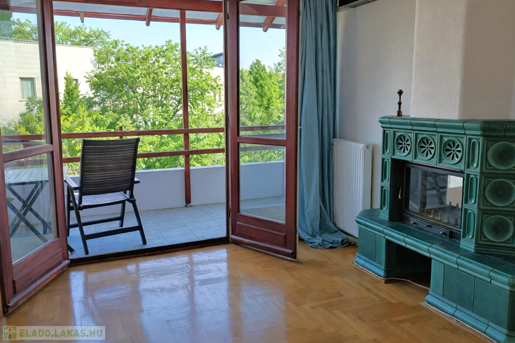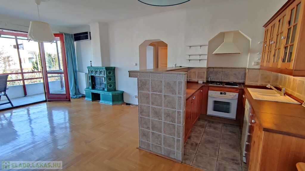 The TOP floor, BRIGHT apartment has a beautiful view of the QUIET, green environment. The living room with American kitchen is east facing, and through the glass patio door that fills the entire wall, we can exit to the 7 sqm balcony, from which a partial panorama opens.