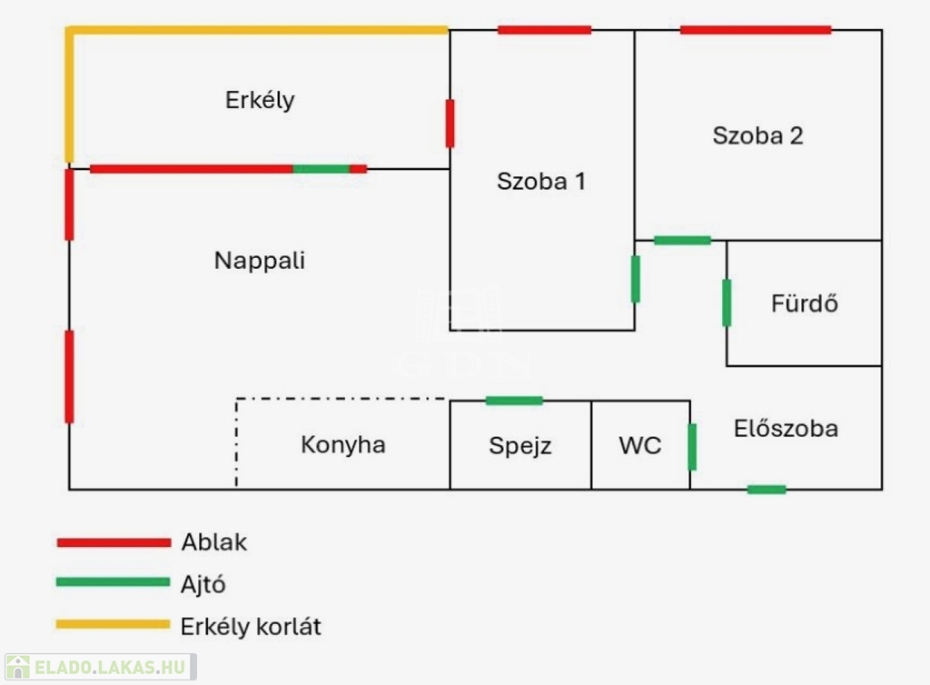 A helyiségek elrendezését, méreteit lásd az ALAPRAJZON !