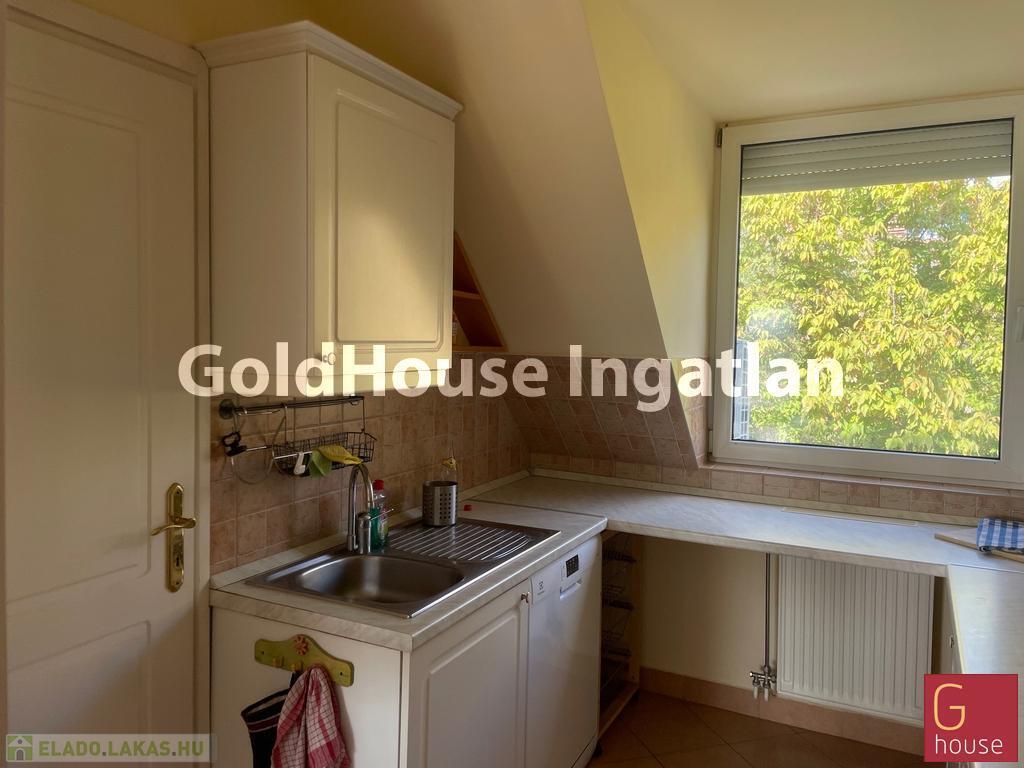 Felszereltség: beépített konyhabútor mosogatógéppel, légkondicionáló, kondenzációs kazán, beépített gardróbok, szigetelt és redőnyös ablakok, szúnyogháló, a kertben sütögető hely.