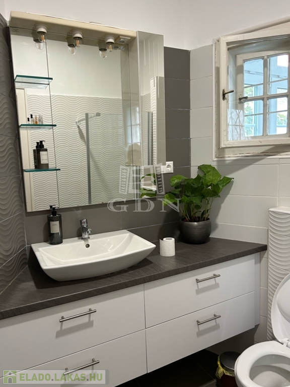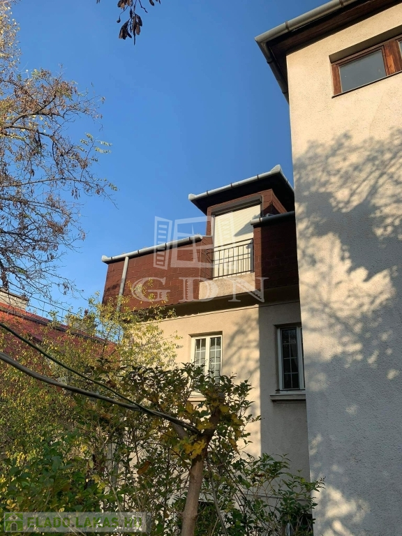 A lakás az utca felöl félemeleten, a kert felöl pedig az 1. emeleten található, egy 7 lakásos vila épületben, 1030 nm-es telken.