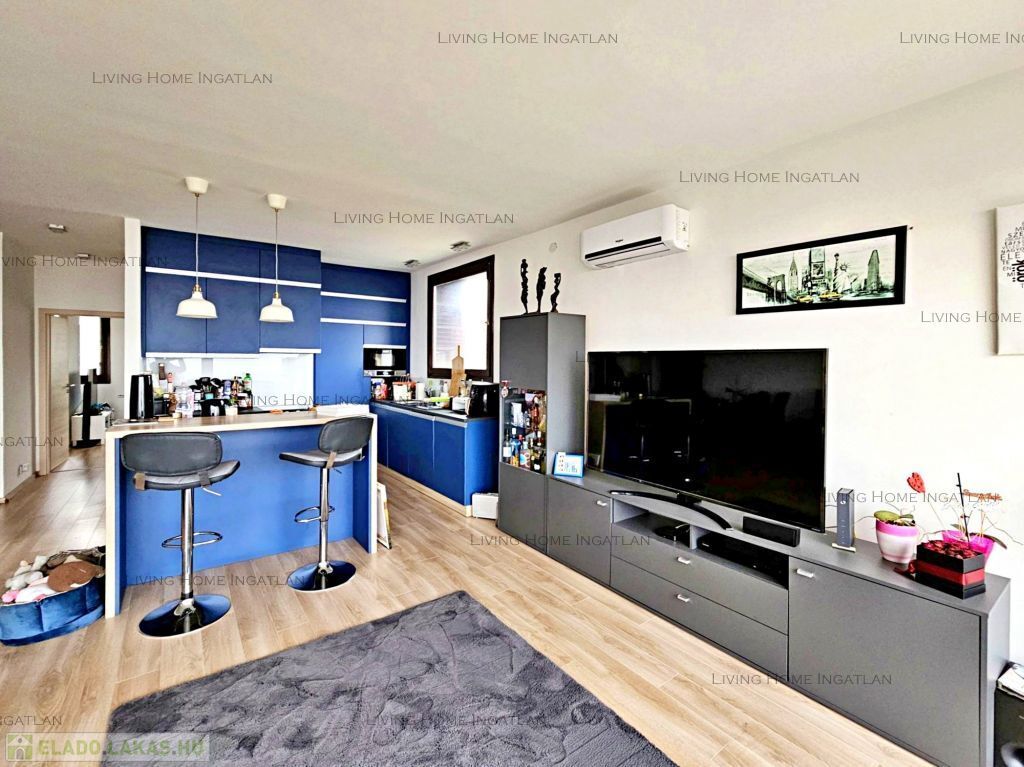 Sasad tetején, kertes társasházban kínálunk eladásra egy 94 nm-es, második emeleti, kétszintes, amerikai konyhás nappali + 2 hálós, dupla komfortos, nagy teraszos, tágas lakást pazar panorámával.