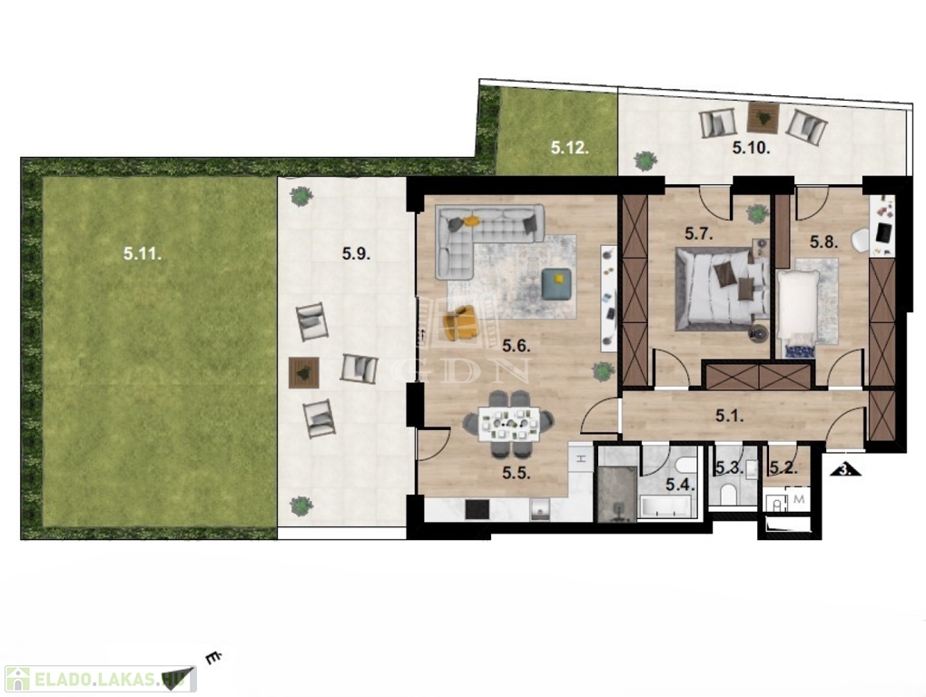 49, 54, 71, 80 nm2 méretű ingatlanok közül lehet választani. Földszinti lakások saját terasszal és kertrésszel míg az 1. és 2. emeleti lakások nagy teraszokkal rendelkeznek.