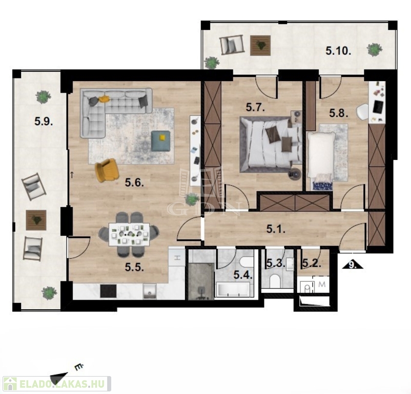 49, 54, 71, 80 nm2 méretű ingatlanok közül lehet választani. Földszinti lakások saját terasszal és kertrésszel míg az 1. és 2. emeleti lakások nagy teraszokkal rendelkeznek.