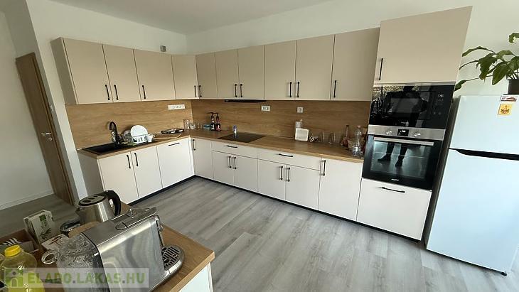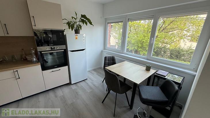 A lakás belső elosztása kiváló: világos, tágas terek jellemzik, amely otthonos környezetet teremt.