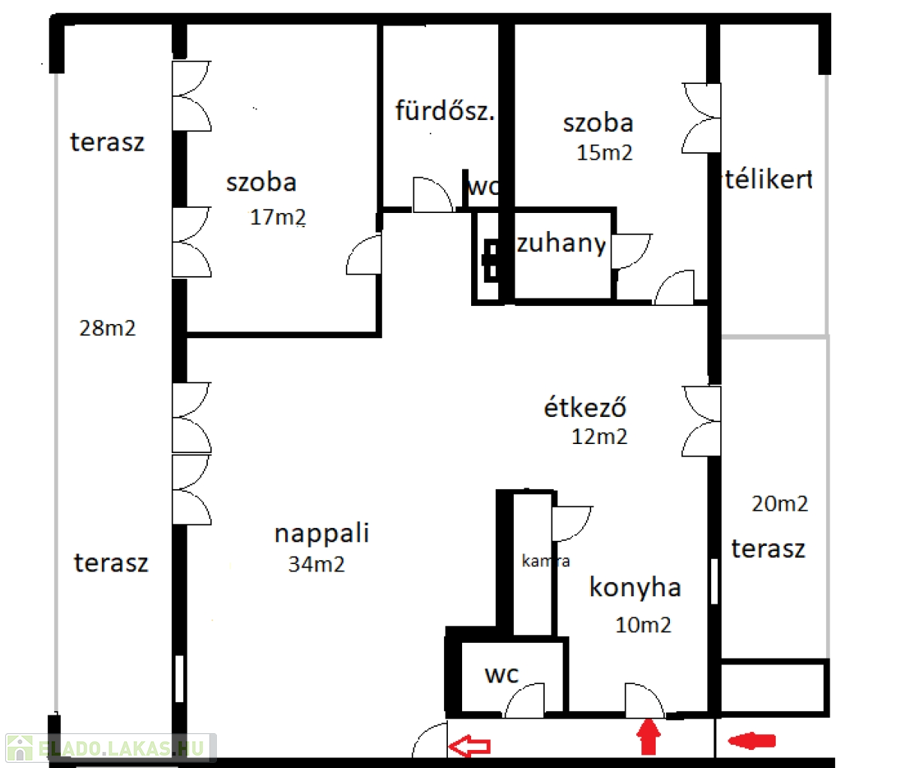 A lakáshoz 2 TERASZ tartozik, mely kiválóan alkalmas JACUZZI, SZAUNA, grillsütő kialakítására, hideg-melegvizes zuhany kivezetéssel rendelkezik.