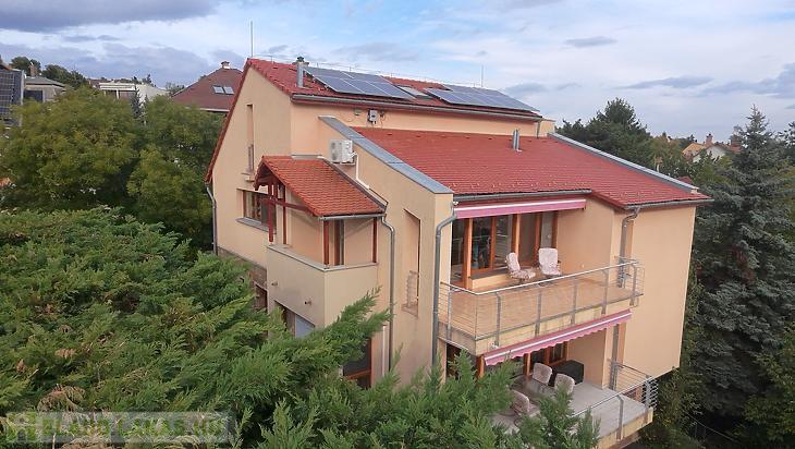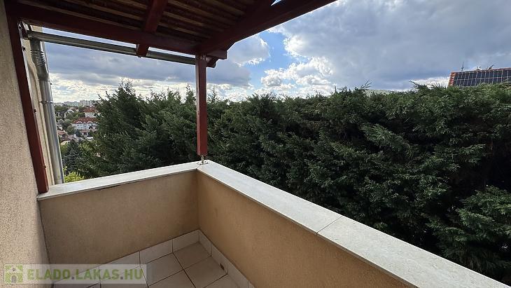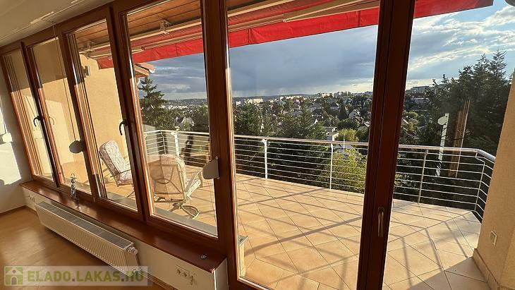 A nappaliból nyílik egy 15 nm-es délnyugati fekvésű, gyönyörű panorámával rendelkező, félig fedett, motoros árnyékolóval ellátott terasz, illetve szintúgy a nappaliból közelíthetjük meg az oldalsó, nyugati fekvésű 5 nm-es, teljesen fedett erkélyt.