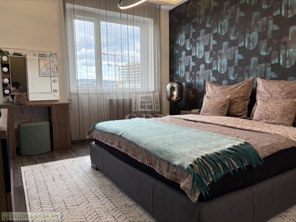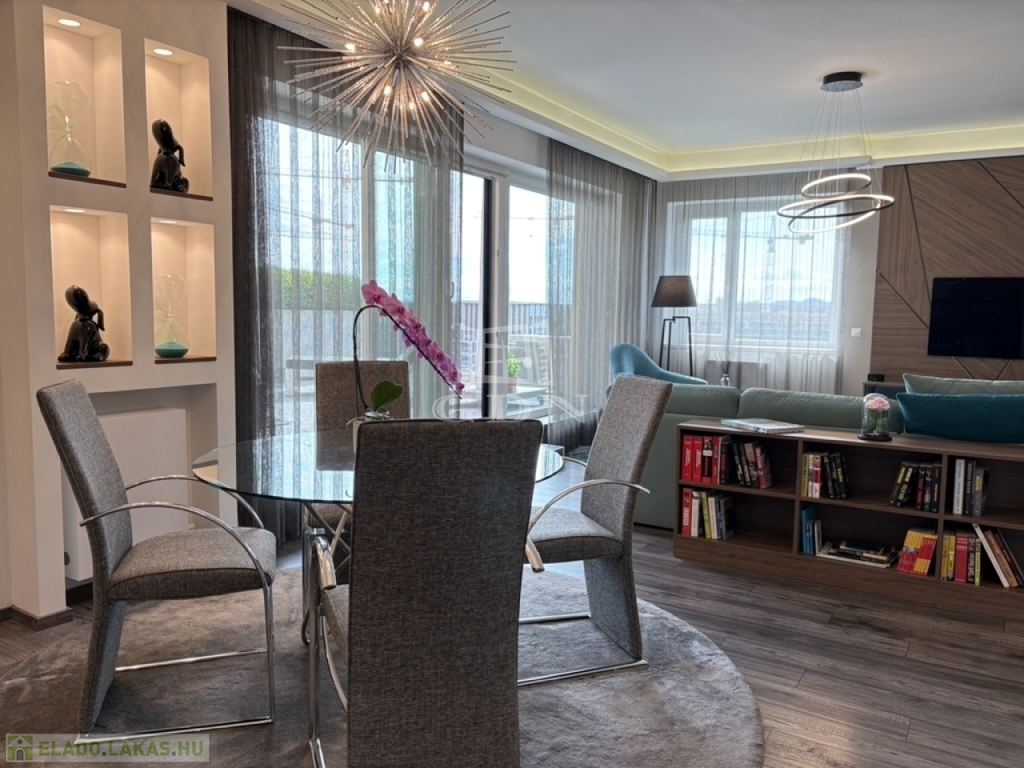 Eladó egy 89 nm-es, legfelső emeleti luxuslakás, amelyet a tágas terek (290 cm belmagasság), az igényes anyaghasználat és a prémium kivitelezés tesz igazán különlegessé. Az épület 2020-ban került átadásra, az első 12 hónapban pedig minden garanciális javítás megtörtént, valamint a teljes belsőépítészeti kialakítás is elkészült.