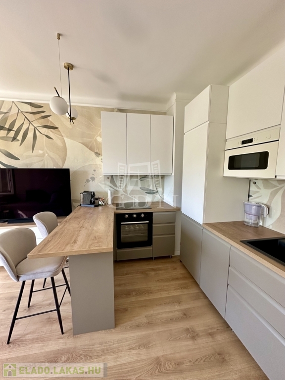 A lakás 1 évvel ezelőtt teljeskörű műszaki korszerűsítésen esett át (víz, villany), igényes burkolatokkal és energiatakarékos nyílászárókkal. A lakberendező tervei alapján, nyugalmat, harmóniát sugárzó multifunkcionális élettér került kialakításra. A déli tájolásnak köszönhetően szinte egész nap természetes fényt kap.