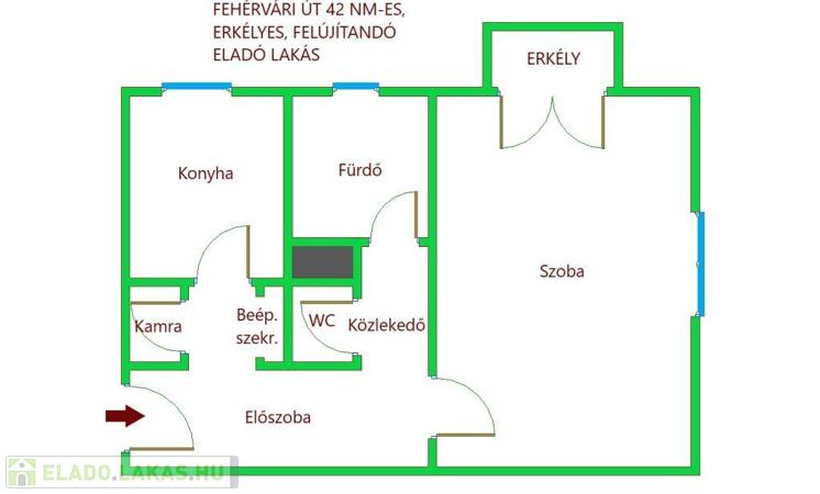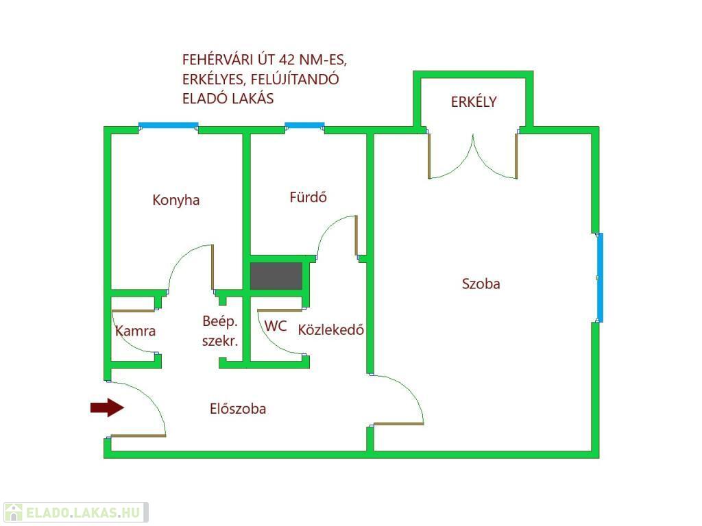 A lakás praktikus elrendezésű, minden négyzetmétere jól kihasználható, ugyanakkor a felújítás során kiválóan alakítható: könnyedén kialakítható amerikai konyhás nappali + külön hálószoba, így modern, élhető otthon hozható létre.